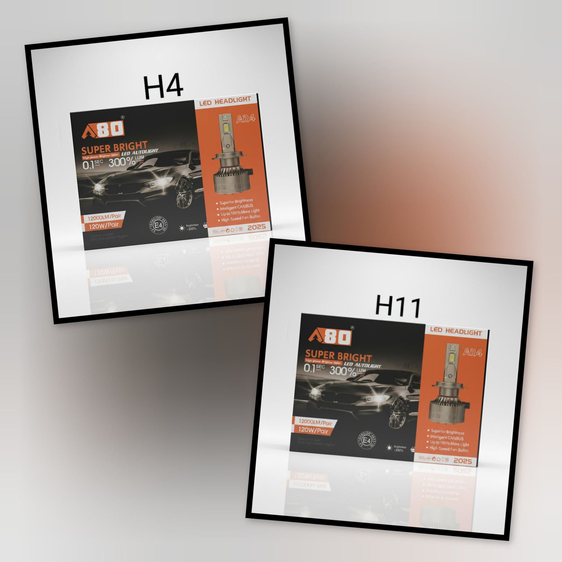 Les Ampoules "A80 AR4 2025 Turbo LED" sont des ampoules de phare puissantes pour véhicules, conçues pour offrir une luminosité supérieure à celle des ampoules halogènes traditionnelles, avec une durée de vie prolongée et un fonctionnement plus efficace. Elles se caractérisent par une lumière blanche et brillante à 6000K qui améliore la visibilité, ainsi qu'un système de refroidissement intégré ( un ventilateur et un dissipateur thermique en aluminium) pour éviter la surchauffe. Leur conception tout-en-un et leur compatibilité Canbus sont aussi des avantages clés, car elles évitent les erreurs sur le tableau de bord et facilitent l'installation.